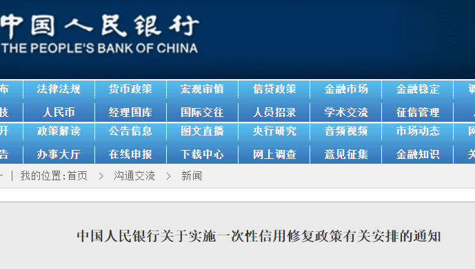 为积极应对新冠疫情后续影响,支持信用受损但积极还款的个人高效便捷重塑信用,助力经济持续回升向好,中国人民银行决定实施一次性信用修复政策。现就有关安排通知如下:...