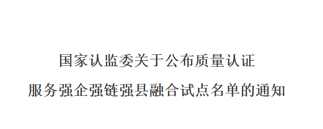 根据《国家认监委关于征集质量认证服务强企强链强县融合试点的通知》(国认监函〔2025〕5号),经自愿申报和专家技术评审,现公布质量认证服务强企强链强县融合试点名单(见附件)。...