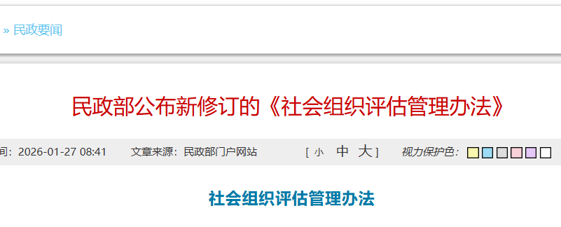 《社会组织评估管理办法》已经2026年1月16日民政部部务会议审议通过,现予公布,自2026年3月1日起施行。...