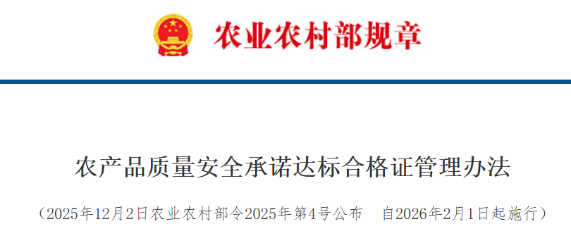 2025年12月2日农业农村部令2025年第4号公布 自2026年2月1日起施行 ...