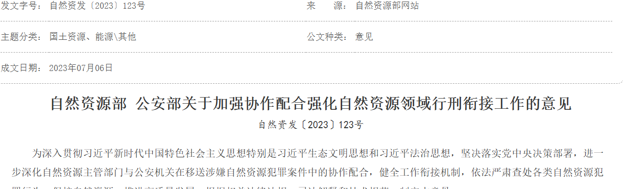 为深入贯彻习近平新时代中国特色社会主义思想特别是习近平生态文明思想和习近平法治思想,坚决落实党中央决策部署,进一步深化自然资源主管部门与公安机关在移送涉嫌自然资源犯罪案件中的协作配合,健全工作衔接机制...