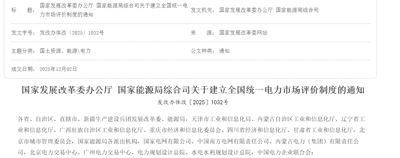 为深入贯彻落实党中央、国务院关于加快建设全国统一大市场、深化电力体制改革的决策部署,保障全国统一电力市场体系高效运行和有效监管,现就建立全国统一电力市场评价制度有关事项通知如下。...