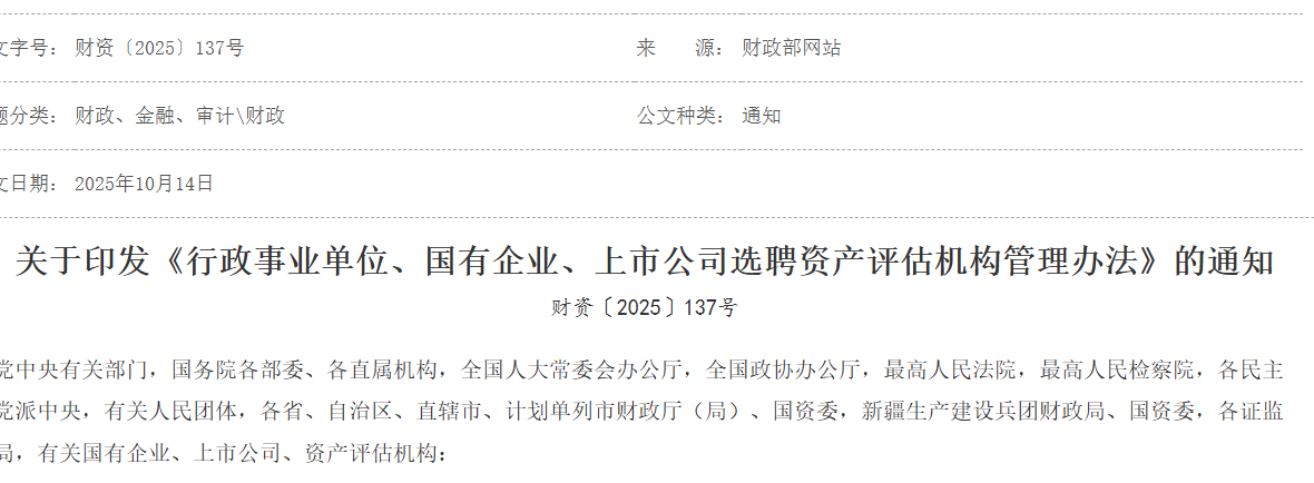 为规范行政事业单位、国有企业、上市公司选聘资产评估机构行为,推动提升资产评估业务质量,根据《中华人民共和国资产评估法》、《国有资产评估管理办法》(国务院令第91号)等,我们制定了《行政事业单位、国有企...