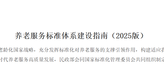 为贯彻落实《中共中央 国务院关于深化养老服务改革发展的意见》、《国家标准化发展纲要》,持续健全养老服务标准和评价体系,切实发挥标准对推动养老服务高质量发展的引领作用,民政部、国家标准化管理委员会共同组...