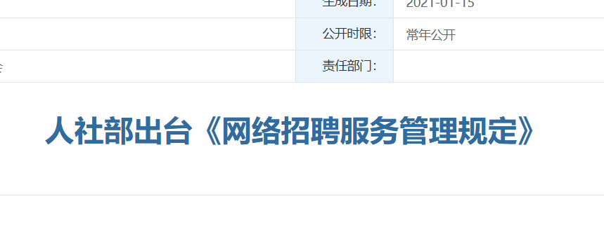 《网络招聘服务管理规定》已经2020年12月7日人力资源社会保障部第54次部务会审议通过,现予公布,自2021年3月1日起施行。...