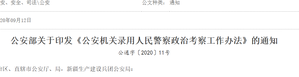 为深入贯彻落实党中央关于全面从严治党、从严管理干部和政治建警、全面从严治警决策部署,严格规范公安机关录用人民警察政治考察工作,着力锻造对党忠诚、服务人民、执法公正、纪律严明的高素质过硬公安队伍,根据《...