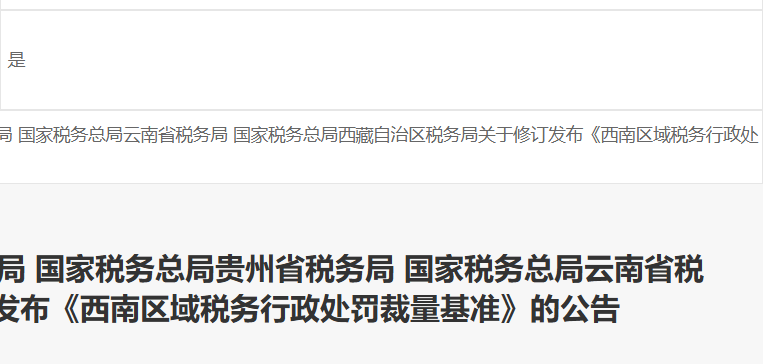 本公告自2024年8月1日起施行。《国家税务总局重庆市税务局 国家税务总局四川省税务局 国家税务总局贵州省税务局 国家税务总局云南省税务局 国家税务总局西藏自治区税务局关于发布〈西南区域税务行政处罚裁...