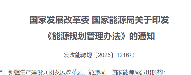 为加强能源规划管理,依据《中华人民共和国能源法》,国家发展改革委、国家能源局制定了《能源规划管理办法》。现印发给你们,请遵照执行。...