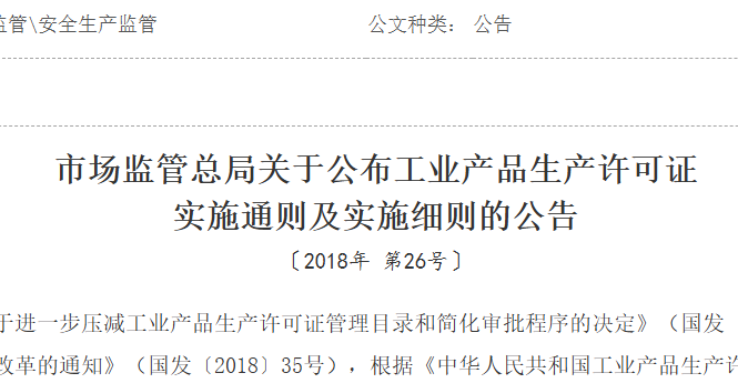 为贯彻落实《国务院关于进一步压减工业产品生产许可证管理目录和简化审批程序的决定》(国发〔2018〕33号)和《国务院关于在全国推开“证照分离”改革的通知》(国发〔2018〕35号),根据《中华人民共和...