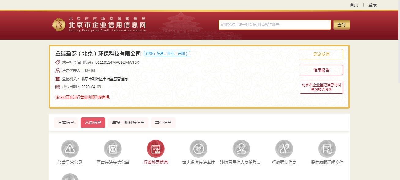 鑫瑞盈泰(北京)环保科技有限公司 统一社会信用代码:91110114MA01QMWT0X 法定代表人:杨担林