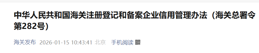 2026年1月13日海关总署令第282号公布 自2026年4月1日起施行...